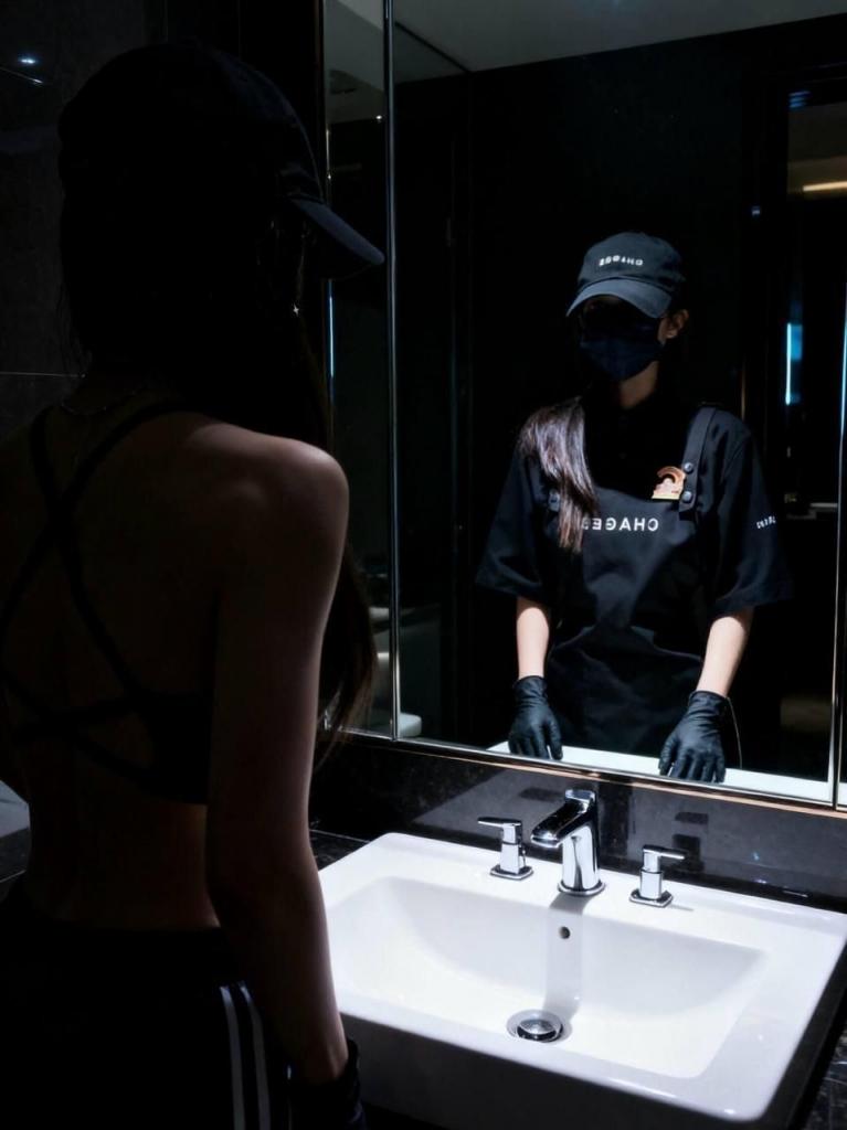 站在镜子前慢慢解开衬衣扣子